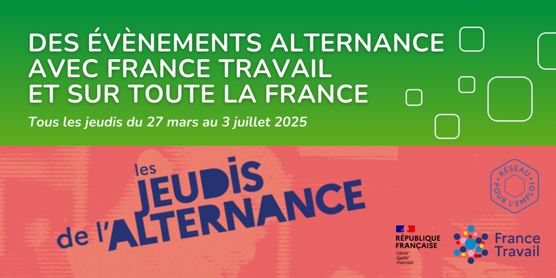 Chaque jeudi, du 27 mars au 03 juillet 2025, France Travail invite les personnes à participer à des événements organisés sur tout le territoire, en collaboration avec le Réseau Pour l'Emploi - Cap emploi et les Missions Locales -.